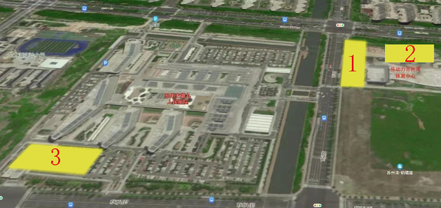 医院感染科楼(4号楼)南侧广场原社会人群愿检尽检、应检尽检采样调整至苏州湾体育中心北侧便民采样点(医院南大门马路斜对面)图中1号位置,原区域仅保留院内就诊人员采样;原黄码采样点搬迁至苏州湾体育中心东侧停车场图中2号位置。