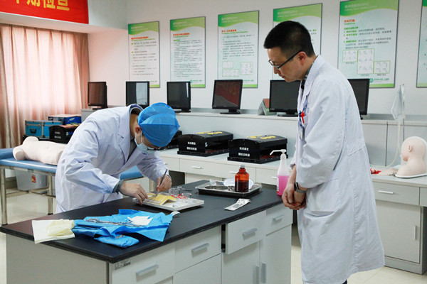 检查组的两位临床专家及我院三位专科副主任医师,对临床专业16位实习生分组进行了内、外、妇、儿学科的操作技能考核。考核专家对在我院实习同学的技能操作水平表示认可。
