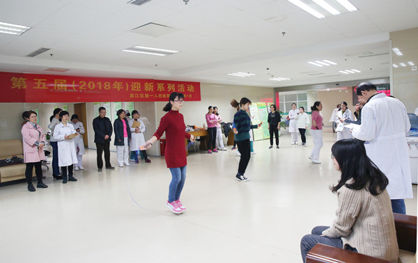 为贯彻党的十九大精神、践行健康中国战略,我院工会经过前期全面发动、精心准备,于1月18日如期在体检中心大厅举办了“第五届迎新系列活动”。 本次活动得到了全院职工的积极响应,近200名职工报名参加了跳绳、呼啦圈比赛。