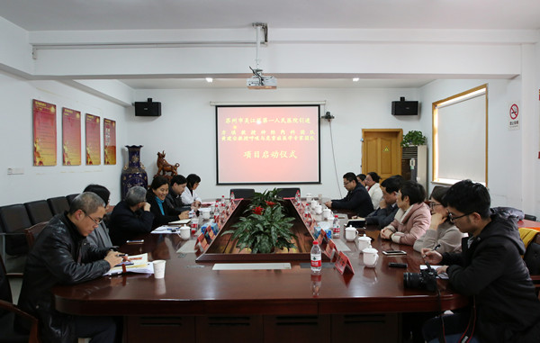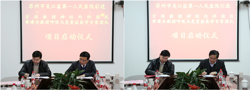 2月7日,吴江区级临床专家团队项目引进启动仪式在我院行政楼会议室举行,标志着我院成功引进苏州大学附属第一医院方琪教授神经内科团队、黄建安教授呼吸与危重症医学专家团队。吴江区卫计委副主任管罕英、医政科科长薛建英,方琪团队核心组成员、黄建安团队核心成员,我院院长沈根海,副院长李根华、吴巧珍、张晓剑以及部分职能科室主任、依托科室代表出席了仪式。