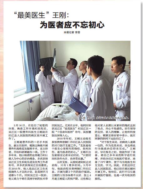 2018年年初,王刚主动报名参加贵州省铜仁市印江县人民医院的对口医疗支援工作。“支医是每个医生心里都有的情结,救死扶伤,是为医者的初心。”王刚在出发前接受记者采访时说,“只要时间和条件允许,我非常乐意。”