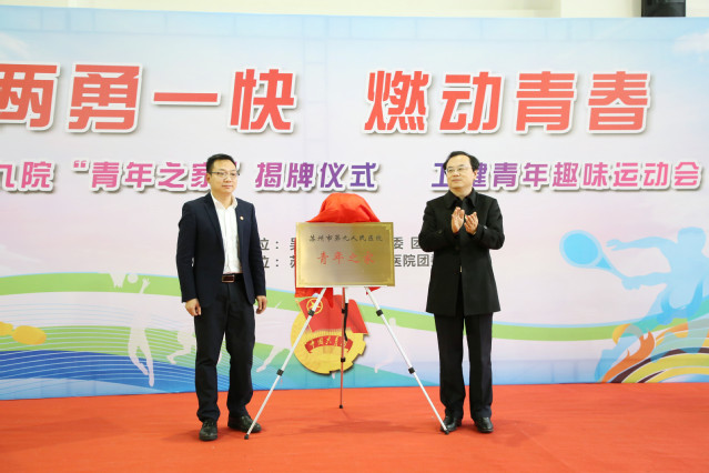 近日,苏州九院“青年之家”阵地揭牌仪式在医院行政教学楼二楼室内活动场隆重举行,团区委书记王鹏宇,苏州市卫健委团委副书记陶沙,区卫健委党委副书记、区爱卫中心主任范建光,医院团委分管领导李金彪出席仪式。区卫健委团委书记陈露和卫健委各单位团支部书记、青年代表共80余人参加。