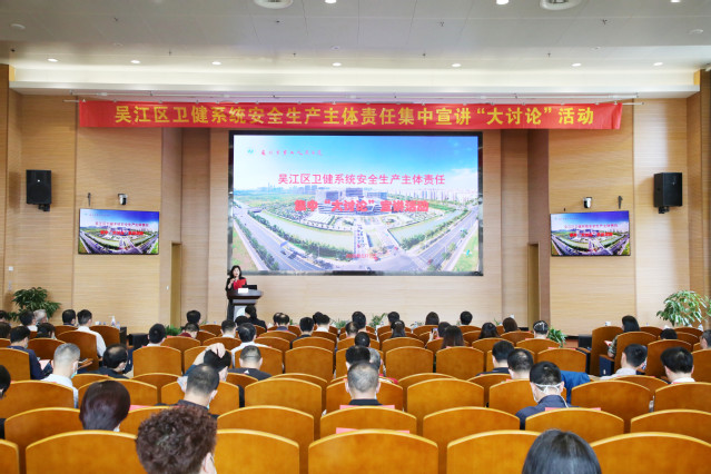 5月7日下午,吴江区卫健系统安全生产主体责任集中宣讲“大讨论”活动在苏州九院举办,区卫健委领导、机关处室负责人、直属单位负责人、各医疗卫生单位主要领导、分管领导及职能科室负责人等百余人参加了会议。