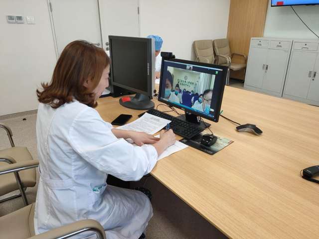 **远程会诊病例与瘢痕切口妊娠治疗有关。苏州九院儿科主任、主任医师陈美元,妇科副主任、主任医师茅惠群,新生儿科副主任医师张洁等三位医生隔着屏幕听取了患者的病情介绍和治疗情况后,与屏幕另一端的印江人民医院医生一起探讨,进一步优化诊疗方案。