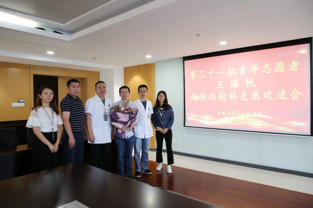 9月21日,苏州九院泌尿外科王臻帆接过了对口支援的接力棒,作为苏州市第三十一批援陕扶贫支医青年志愿者奔赴陕西榆林,进行为期3个月的援陕医疗服务。当日上午,苏州九院为王臻帆医生举办欢送仪式,副院长郎建华出席,医务处、团委、泌尿外科相关人员共同欢送。