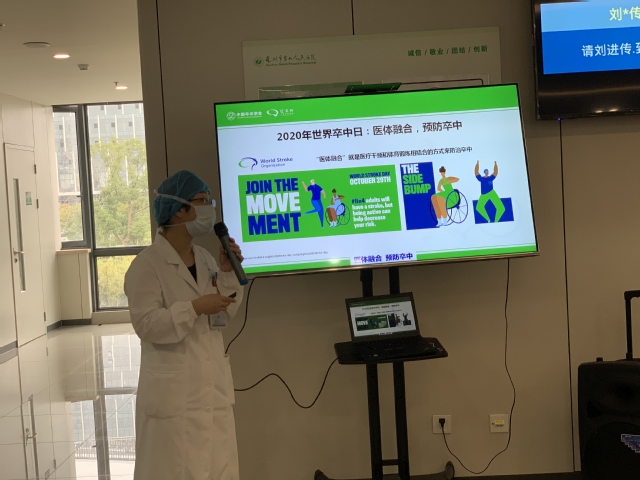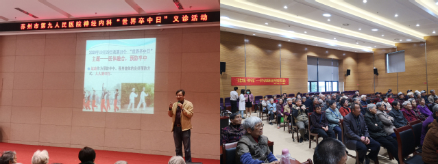 今年10月29日是第15个世界卒中日,宣传主题是“医体融合,预防卒中”,口号是“科学运动,健康生活”。为贯彻落实《健康中国行动(2019-2030年)》有关要求,推进心脑血管疾病防治工作,苏州九院神经内科举行了一系列专题科普讲座及义诊活动。