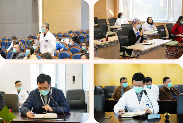 宣讲结束后,沈书记和大家就党的十九届五中全会精神进行了互动交流。来自医疗、护理、医技、职能科室的党员干部分别就如何加强党建工作与医疗业务工作相融合,如何运用人才评价体系调动医院人才的积极性,如何在工作中理解并坚持人民至上、生命至上,把保护人民生命安全摆在首位,如何在工作中更好地理解并坚持基本医疗卫生事业公益性等方面进行了提问。沈书记一一作了解答。
