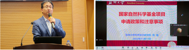 会议结束后,医院举办了两场学术讲座。苏州大学科技处科学技术研究院基金管理办公室席建主任详细讲解了国家自然科学基金项目申请政策和注意事项;苏州大学唐仲英医学研究院黄玉辉教授介绍了国家自然科学基金项目标书撰写的一些注意事项。