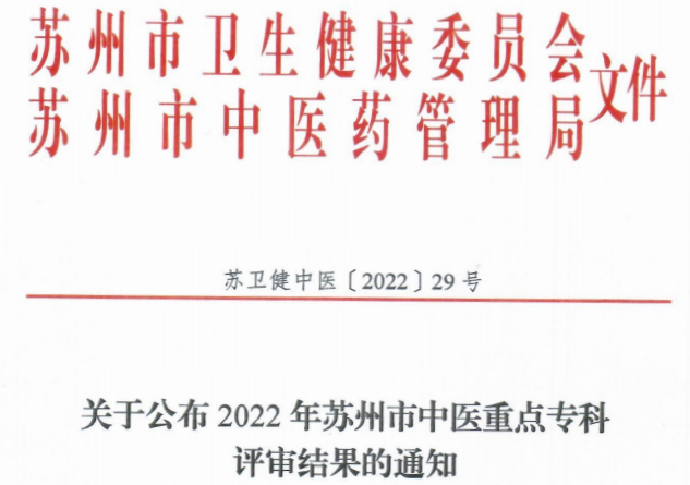 重点专科是体现一家医院综合实力的重要组成部分,是医院的品牌和核心竞争力。此次中医康复科获评“2022年度苏州市中医重点专科”,是医院高质量发展,技术实力及管理水平全方位提升的又一体现。下一步,医院将进一步加强各级临床重点专科建设与管理,认真规划、严格要求、对照相应的技术标准、评分标准,发布坚持目标导向、问题导向,给予更加有力的配套政策,加大临床技术创新力度、人才队伍建设力度,争创更多省级、市级重点专科。