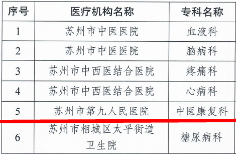 苏州九院中医科于1936年建立门诊,2013年11月在中医科的基础上成立中医康复科,并开放中医康复科独立病区。2016年被评为“国家中医药示范单位”;2019年成为“江苏省康复医学专科联盟理事单位”;2020年获得“苏州市中医重点专科建设单位”。科室核定床位45张,共有医疗技术人员48名,副主任医师3名、主治医师15名、住院医师3名、康复治疗师15名,康复专科护士1名,其中硕士12名。