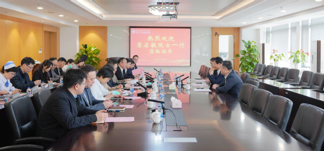 3月26日上午,中国工程院院士、苏州大学苏州医学院院长詹启敏,苏州大学苏州医学院党工委书记钱福良,党政办主任彭晓蓓一行调研苏州九院。吴江区副区长李红,区政府办副主任华小钢,区卫健委党委书记、主任蔡绍广等参加调研。苏州九院党委书记、副院长沈宇,院党委副书记、副院长沈根海及医院领导班子成员陪同走访并参加座谈。