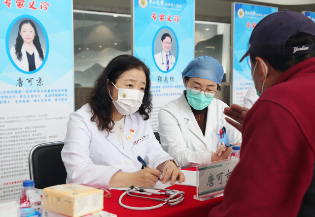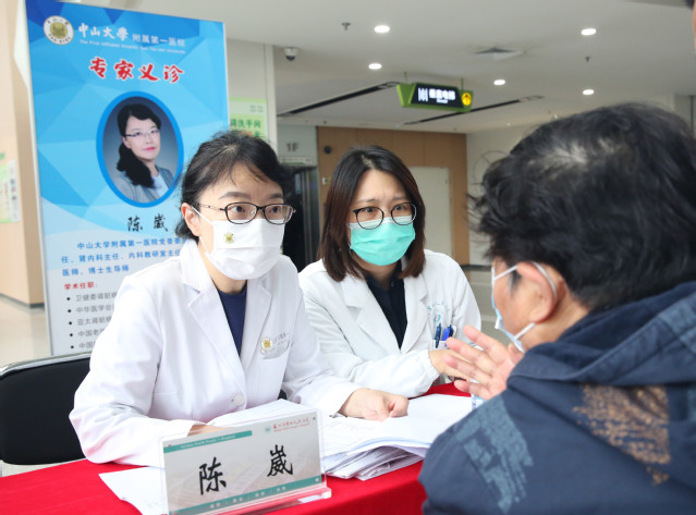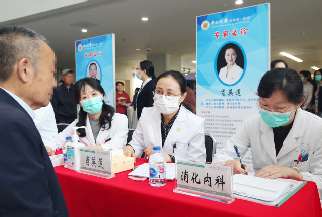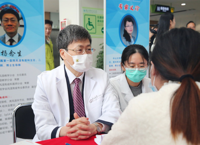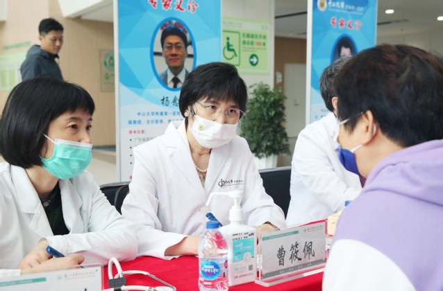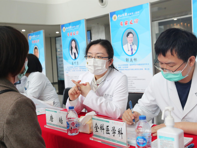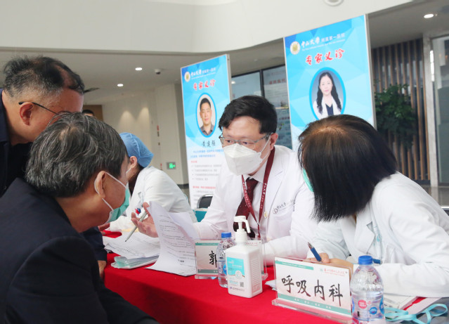 在苏州九院门诊大厅,来自中山一院呼吸与危重症医学科、消化内科、内分泌科、肾内科、风湿免疫科、肝胆胰外科、妇科、耳鼻咽喉科、皮肤科、全科医学科等10余位专家为市民提供疑难咨询、健康指导等优质医疗服务。