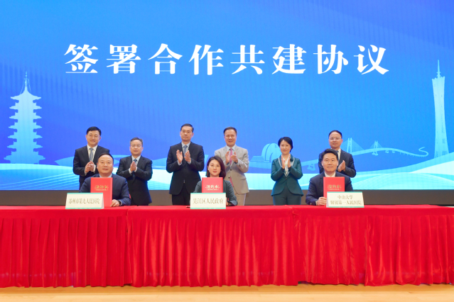 中山大学附属第一医院是国内医学领域规模最大、综合实力最强的医院之一,长期名列全国医院前茅,多个学科排名位于全国乃至全球前列。合作启动后,吴江区政府、中山一院、苏州九院将共建“中山一院特需医疗联盟合作中心”,中山一院将通过专科联盟、技术帮扶、人才培养、远程会诊等方式指导苏州九院创建三级甲等综合医院,并将重点建设普外科(以肝胆胰外科为主)、妇科以及呼吸内科。