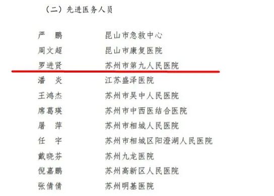 工作期间,罗进贤认真负责,不断参加各类培训学习班,提高自身急救医疗水平。熟练掌握各种急救技能,为院前急救工作作出了积极贡献。工作十余年来,因工作表现出色,多次获评市级、区级年度优秀及先进个人。2023年11月,他还代表吴江区卫健系统参加苏州市卫健委举办的“健康苏州杯”院前急救技能竞赛,夺得团体二得奖和个人三等奖。