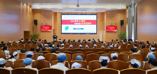钟慧代表苏州大学苏州医学院向苏州九院全体教师致以节日问候,感谢苏州九院在学校人才培养方面所做的努力和贡献。会上,钟慧作《立足教学行教改,积极实践学术性教学》专题讲座。从实践学术性教学的基本思考和学术性教学向教学学术转化的努力方向两方面阐述其重要意义,希望苏州九院为更多热爱教学并具有献身精神的教师提供有力的政策制度保障。