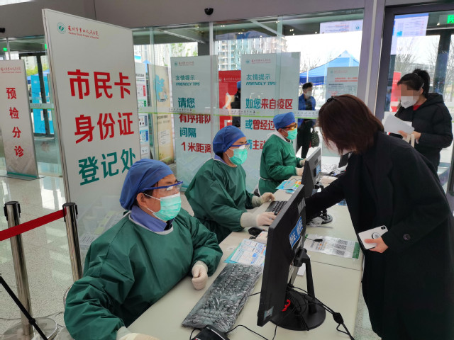 患者及家属必须出示身份证、医保卡等有效身份证件,通过预检分诊处电脑刷卡进行准确、快捷地身份信息登记,并配合完成体温检测和流行病学史调查后才能入院。
