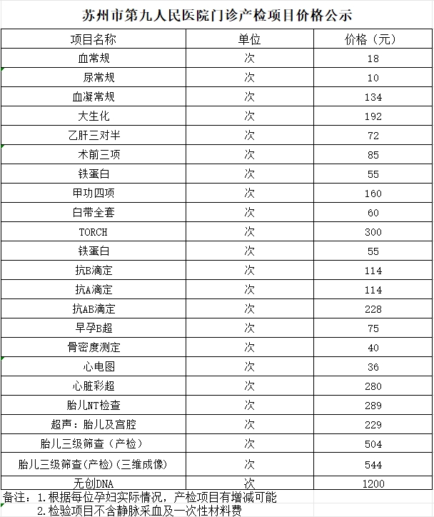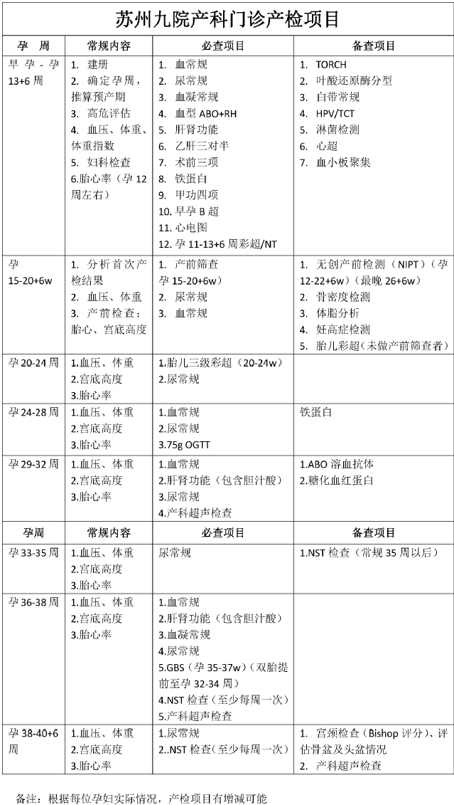 苏州九院产科门诊产检项目