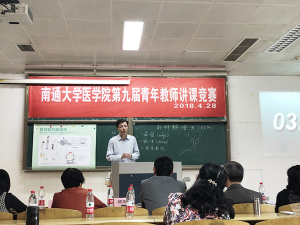 今年3月,南通大学医学院发出关于开展“第九届青年教师讲课竞赛”活动的通知。吴江区一院领导高度重视,医院科教处积极响应,于4月23日在本院组织开展了“任课教师讲课竞赛、理论培训活动”,选拔出优胜者参加南通大学医学院举行的教授课比赛。泌尿外科的沈罡老师在此轮比赛中脱颖而出,代表吴江区一院前往南通大学医学院参赛。