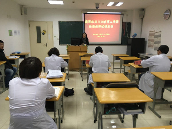 此次参加试讲的5位新老师,均是首次担任南通大学临床专业1510班级理论教学任务的任课老师,虽然试讲的每一堂课只有短短的八分钟,但选手们都进行了精心准备,评委们对每位选手的讲课都认真聆听、记录优缺点并打分。在点评阶段,评委们一致认为新教师们课前准备充分,条理清晰、重点突出、能结合板书及PPT讲解并能应用双语教学,其中部分老师讲课富有热情,能结合案例讲解并反映本学科发展新成果,很好地调动了学生的参与性。同时,评委们也提出了中肯建议,希望新教师们讲课时要注意启发式教学,切忌盯着电脑讲课,板书要规范、重点要突出;对于PPT的使用切忌文字太多、要充分利用教具;注意语速语调、双语教学以及时间的把控、活跃课堂气氛等等,争取让每一堂课都生动精彩。