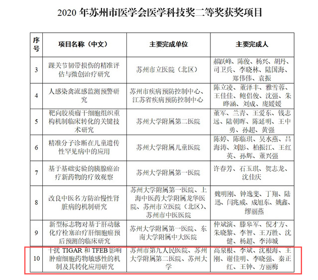 近日,从苏州市医学会传来喜讯,苏州九院普外科团队申报的“干扰TIGAR和TFEB影响肿瘤细胞药物敏感性的机制及其转化应用研究”项目,喜获苏州市医学会医学科技奖二等奖。
