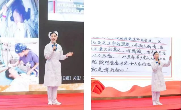 苏州九院王忆君演讲的题目是《青春耀四敢,天使展初心》,她结合抗疫经历,通过几个暖心小故事,抒发了青年人在考验中不忘初心、冲锋在前、努力成长的情怀,彰显了青春的蓬勃力量,并以逆行者的日记做最后升华。她表示,我们都是普通人,没法改变生命的长度,但我们的职业可以改变生命的厚度。守病人病情、保病人平安就是我们人生最大的意义。