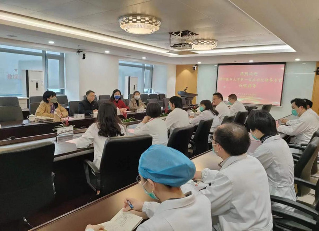 2023年2月23日,徐州医科大学第一临床医学院副院长曹江、内科组专家孔令文主任、教学办公室刘瀛主任和辅导员石硕老师一行4人来苏州九院开展2022-2023学年实习中期检查工作。九院作为徐州医科大学临床学院积极迎接本次检查,分管副院长吴巧珍、教育处处长管学妹、院级教学督导顾卫霞主任、顾岚主任、、内科教研室吕荣主任、外科教研室秘书陈皓主任以及各轮转科室教师代表参加本次检查。