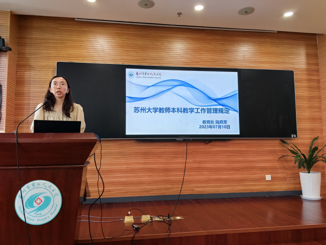 会议第二部分,由教育处副主任陆燕芳分享苏大教【2018】26号关于印发《苏州大学教师本科教学工作管理规定(2018年修订)》及其他规章制度,学习承担高校理论课、见习课等相关教学活动的规范。南京医科大学教学查房视频竞赛已经开始,各教研室都在紧锣密鼓组织初赛。教育处组织各位教学秘书共同学习南医大教学查房规范。