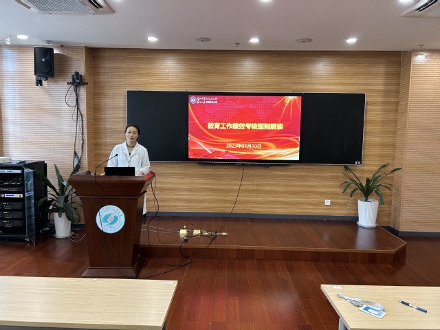 会议日程安排丰富,首先教育处主任管学妹分享2022-2023学年临床教学工作反馈,对月绩效考核中教学考核分值的组成进行详细说明,传达2023年在教学台账检查过程中的问题以及5月份扣分情况(OA公示),督促各科室落实好教学任务的开展和及时记录。为保障教学活动真实开展,教育处再次规范教学计划的登记及教育处督查计划。