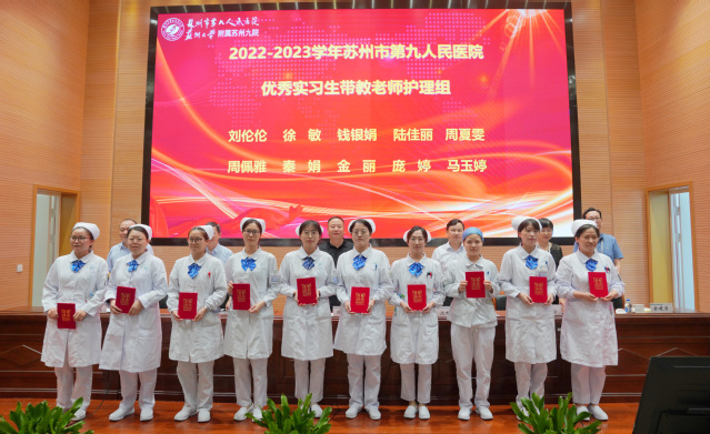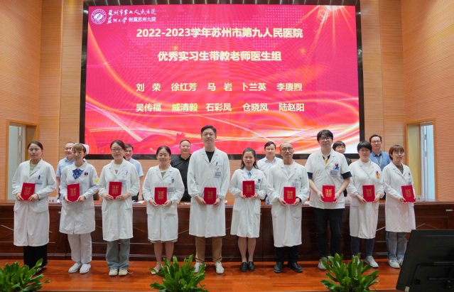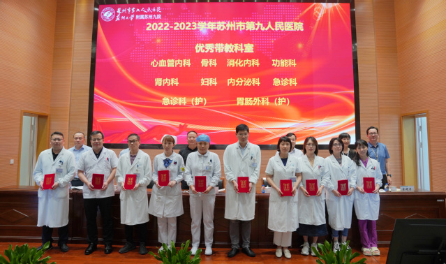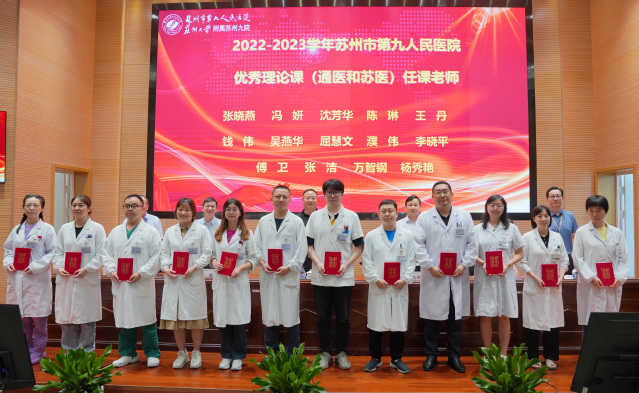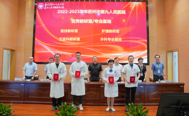 沈宇表示,苏州九院在过去一学年取得的教学成果,离不开医学教育工作者的不懈努力和辛勤付出,他向奋战在医院教学工作战线上的每一位老师致以崇高敬意,向获得表彰的优秀科室和优秀个人表示祝贺。沈宇表示,作为医教研全面发展的三级综合医院,苏州九院承担着培养新时代高素质医学人才的职责和使命,广大医务工作者在治病救人的同时,不忘教学相长,积极助推医院综合实力提升,推动医院高质量发展。沈宇希望,身为健康与灵魂的双重工程师,广大医学教育工作者要言传身教、立德树人,成为有情有义有担当的老师;要自我提升、加强学习,适应现代医学技术快速发展;要守正创新、担当使命,保持对新事物、新技术、新项目的探索情怀,高标准、高质量服务医院发展、服务百姓健康。