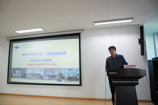 曹永军主任介绍了卒中救治中心的由来以及整个苏州市脑卒中的发病情况。他特别强调“脑血管疾病”已位居苏州死亡顺位第二,因此对于脑卒中患者的救治,时间就是生命,在“4.5小时”的黄金时间窗内,就近把患者送到有救治能力的医院,让患者及时得到有效的治疗,对患者的预后有至关重要的影响,这让在场医护人员深刻意识到了急救“时限”的重要性。