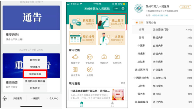 为满足市民疫情期间的就医需求,同时有效降低就医人群聚集带来的交叉感染风险,全力做好疫情防控工作,苏州九院持续推出多元化线上服务。