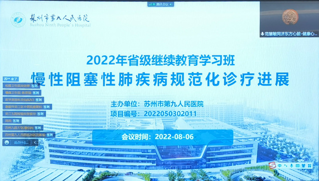 8月5日至8月7日,苏州九院举行省级继续教育学习班“慢性阻塞性肺疾病规范化诊疗进展”暨2022年吴江区呼吸专科联盟会议。此次会议以线上形式举行,近500人在线参会。苏州九院副院长、呼吸与危重症医学科学科带头人吴巧珍主持会议。