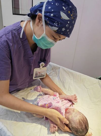 “深呼吸,加油,再来一次,很好,继续用力,加油,很棒,宝宝的头出来了……”在从业的十年光景里,这些词语已被念叨了成千上万遍。十年来,王忆君始终用细心、爱心、耐心、责任心陪伴每一位产妇,当新生儿的第一声啼哭响彻产房的时候,也是她最开心的时刻!