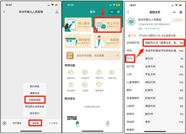 微信搜索“麻豆传媒 ”公众号关注并打开选择“微官网”点击“互联网医院”选择“线上咨询”选择外科---麻醉科义诊(敬畏生命,医患同行)-- 医生(显示有号源)--图文咨询--填写信息提交问诊--等待医生接诊。