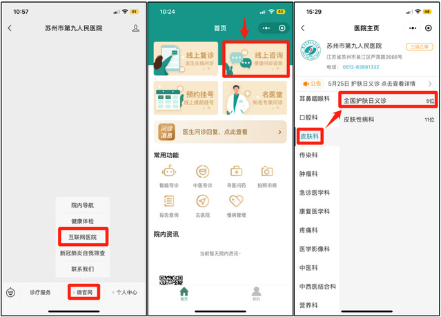 微信搜索“麻豆传媒 ”公众号关注并打开选择“微官网”点击“互联网医院”选择“线上咨询”选择皮肤科--全国护肤日义诊-- 医生(显示有号源)--图文咨询--填写信息提交问诊--等待医生接诊。