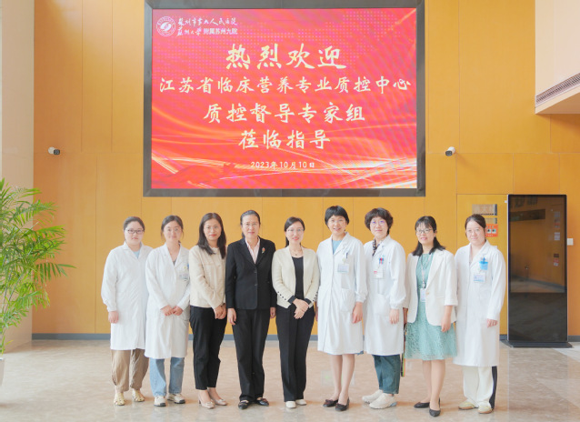 2023年10月10日,江苏省临床营养质控中心专家莅临苏州九院指导调研。督导组专家由常州市第一人民医院陈璐主任、张敏副主任,常州市武进人民医院於红梅主任组成。九院副院长吴巧珍、医务部副主任李莉、营养科主任张琴陪同检查。