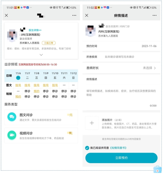 ✔选择图文问诊,填写相关信息进行挂号预约。
