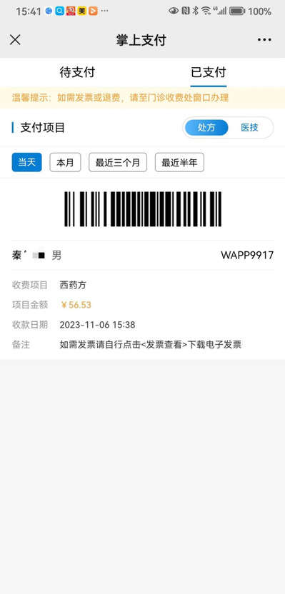✔查看已支付处方。