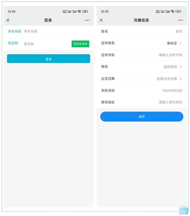 ✔注册登录后,完善信息后保存。