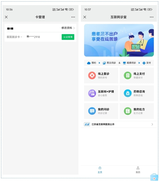✔就诊卡认证成功后,可以返回选择“线上复诊”进行问诊。