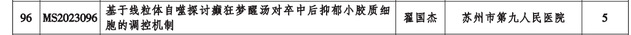 近日,江苏省中医药管理局对2023年度省中医药科技发展计划面上项目立项名单进行公示,其中苏州九院神经内科副主任翟国杰获得2023年省中医药科技发展计划面上项目立项资助。这是九院获批的**江苏省级面上项目。