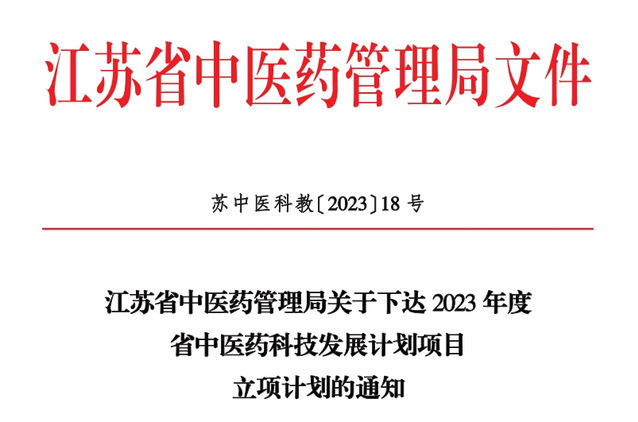 首个!苏州九院获省中医药科技发展计划“面上项目”立项资助