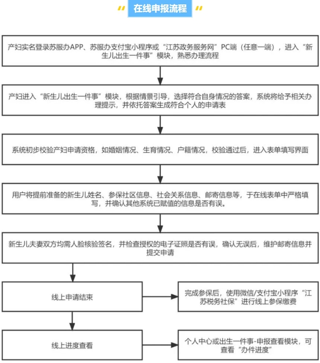 用户可以通过出生一件事“申报查看”或江苏政务服务网、“苏服办”APP个人空间,查看个人业务的审批进度。