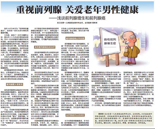 每年10月28日为“世界男性健康日”,我想谈一谈有关老年男性的健康问题。