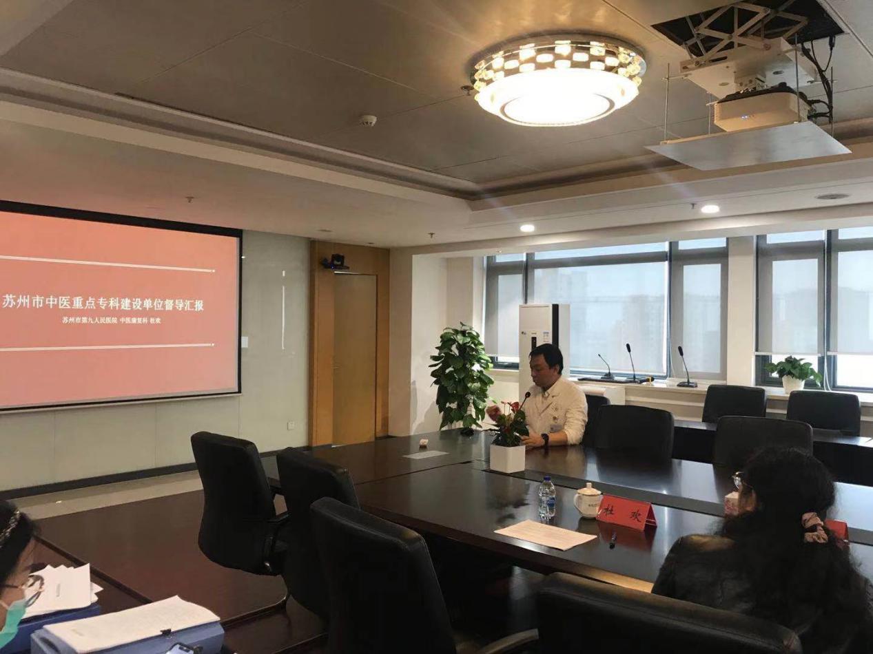 再次,由中医康复科主任杜欢进行苏州市中医重点专科建设单位督导汇报,杜主任从中医病历质量、科研课题、学科带头人、传承工作等几方面详细阐述,意在进一步提升中医药在临床康复工作中的渗透,明确发展方向为中医康复,做好中医和康复在个体化诊疗的基础上,取长补短,进行整体性的有机结合。