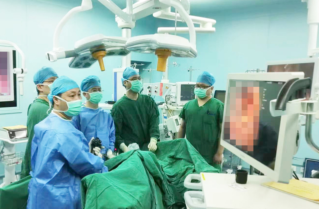 即:患者息肉较多的部分结肠肠管由胃肠外科腔镜下微创切除,而剩余的部分结肠和直肠的息肉则由消化内科肠镜下完成,整个过程麻醉科全程麻醉、加强监护。