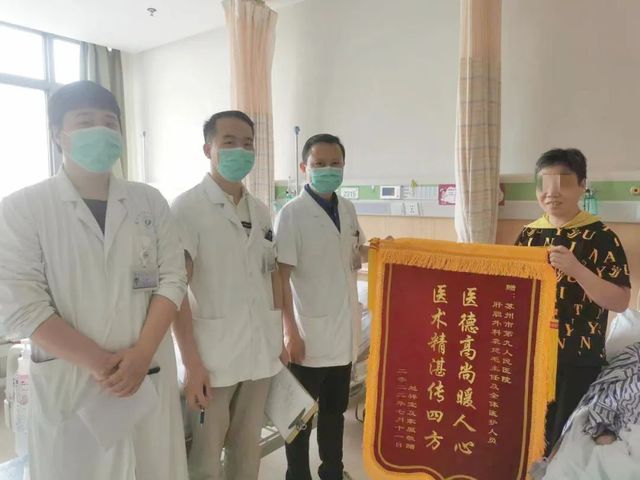 近日,一位94岁高龄胆总管结石的患者家属特地给苏州九院肝胆胰脾外科全体医护人员送来了一面锦旗,以表达患者及家属的感激之情。