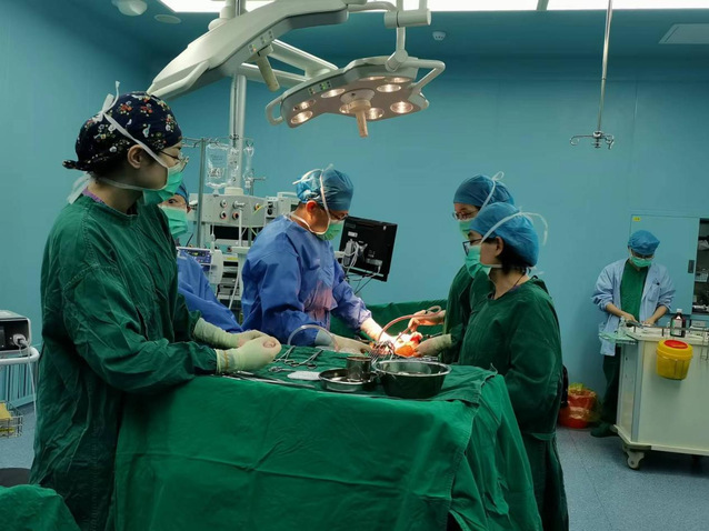 7月23日手术当天,手术按期进行:手术难度及术中麻醉管理难度均极大。患者因卵巢恶性肿瘤已属于中晚期,这就需要多学科的合作,通过苏州九院妇科、胃肠外科、肝胆外科4个小时的紧张手术后,手术宣告成功。