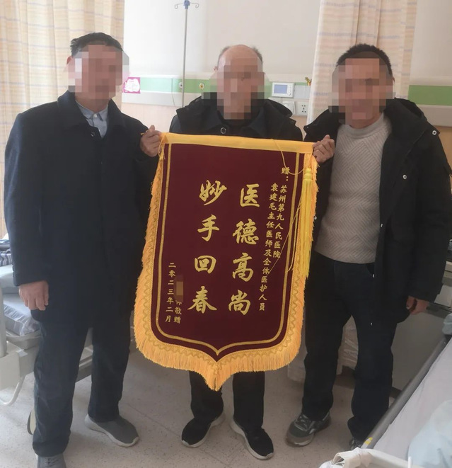 近日,一位77岁的患者携两个儿子将一面写着“医德高尚,妙手回春”的锦旗,送到了苏州九院肝胆胰脾外科,并表达由衷的感谢,感谢肝胆胰脾外科主任袁建毛及全体医护人员精湛的技术和精心的护理。