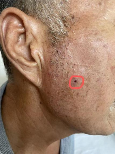 考虑到开放性手术创口大,熊先生几经辗转后来到苏州九院超声介入科寻求帮助。经过综合评估后,徐斌主任在局麻下为熊先生做了超声引导下右颞部肿物穿刺引流术。